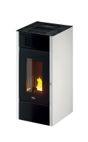 Stufa a pellet canalizzabile da 14 kW con possibilità di riscaldare l’ambiente in cui è installata ed altri adiacenti. Rivestimento in acciaio verniciato.
