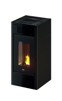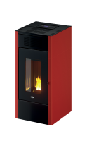 Stufa a pellet canalizzabile da 14 kW con possibilità di riscaldare l’ambiente in cui è installata ed altri adiacenti. Rivestimento in acciaio verniciato.